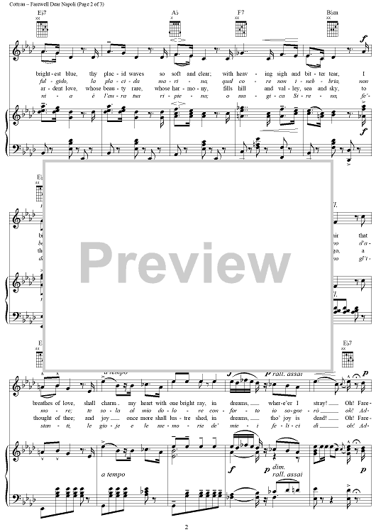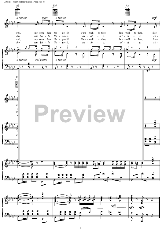 Digital Sheet Music for Farewell Dear Napoli (Addio Alla Bella Napoli) by Teodoro Cottrau scored for Piano/Vocal/Chords; id:272458