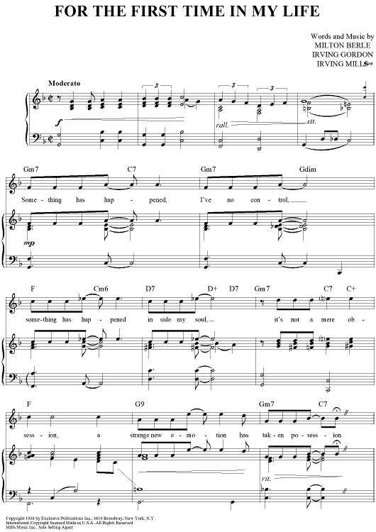 Digital Sheet Music for For The First Time In My Life by Irving Mills, Irving Gordon, Milton Berle scored for Piano/Vocal/Chords; id:428166