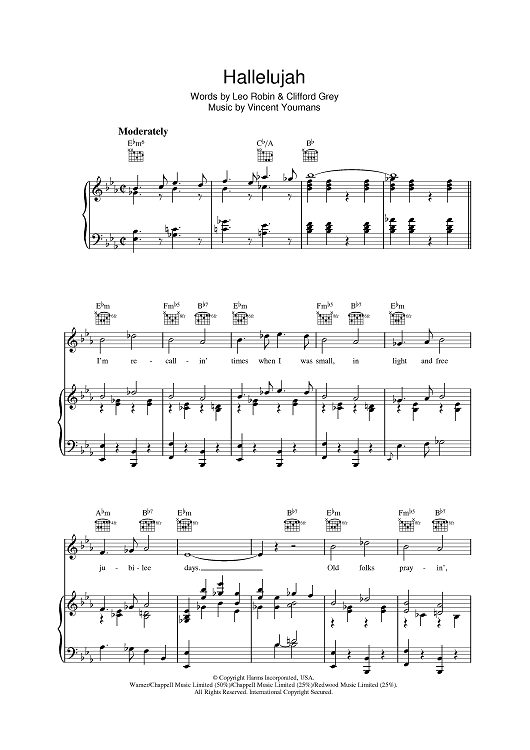 Digital Sheet Music for Hallelujah by Vincent Youmans, Leo Robin, Clifford Grey scored for Piano/Vocal/Chords; id:401417