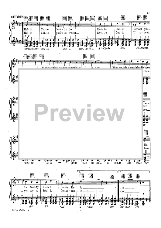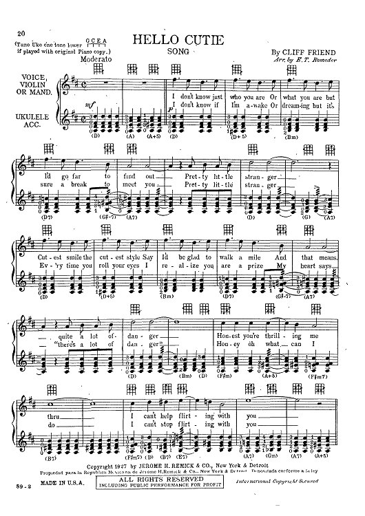 Digital Sheet Music for Hello Cutie by , Cliff Friend, E. T. Romeder scored for Ukulele; id:418692