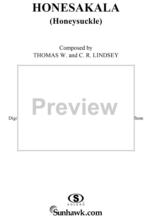 "Honesakala (Honeysuckle)" Sheet Music by C. R. Lindsey