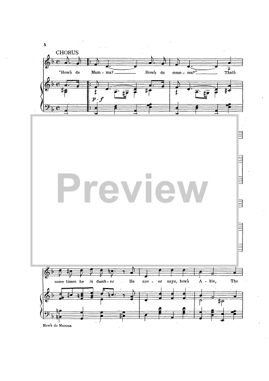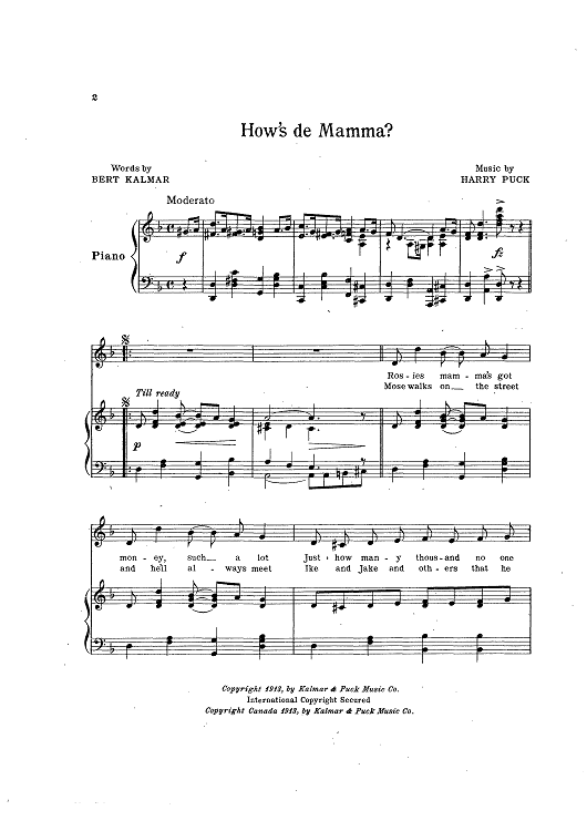 Digital Sheet Music for How's De Mamma? by Bert Kalmar, Fanny Brice, Harry Puck scored for Piano/Vocal; id:423024