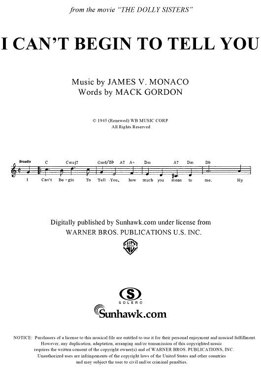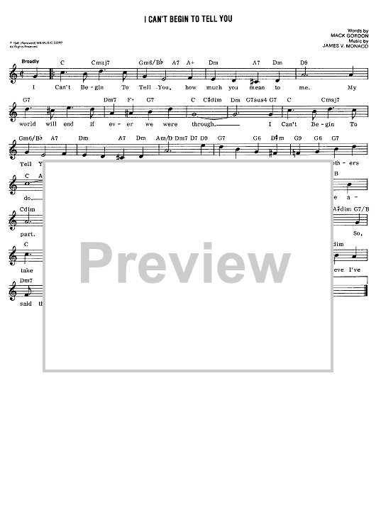 Digital Sheet Music for I Can't Begin to Tell You by James V. Monaco, Mack Gordon scored for Lead Sheet; id:220626