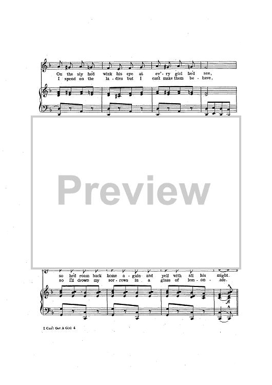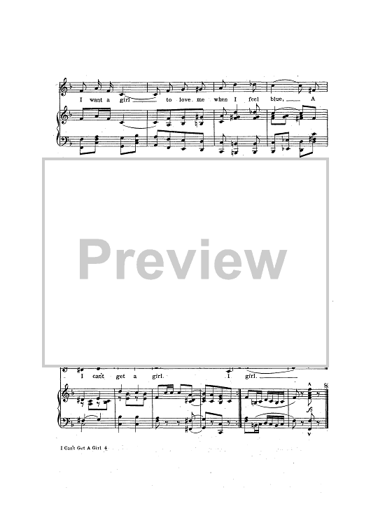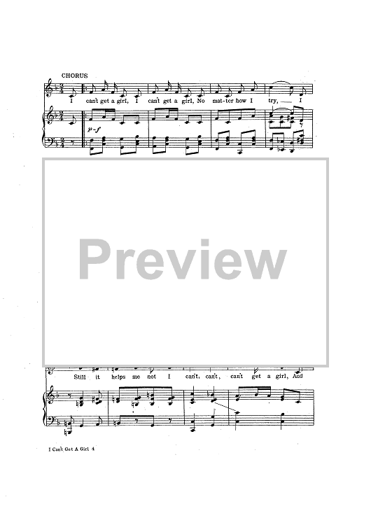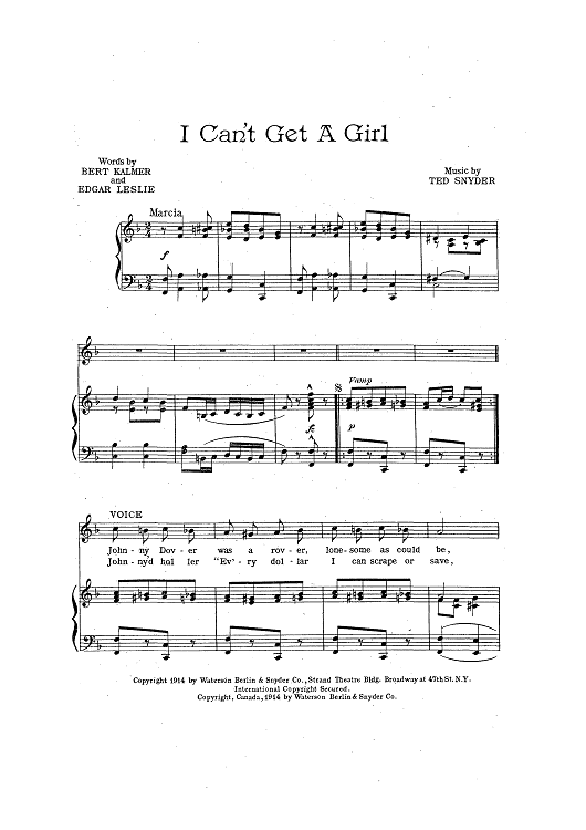 Digital Sheet Music for I Can't Get A Girl by Ted Snyder, Bert Kalmar, Edgar Leslie, Joseph Santley scored for Piano/Vocal; id:423025