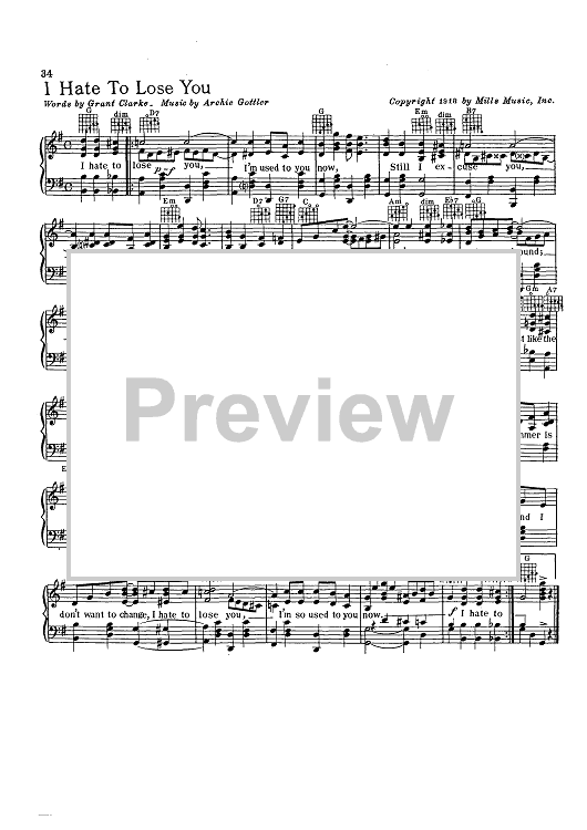 Digital Sheet Music for I Hate To Lose You by Archie Gottler, Grant Clarke scored for Piano/Vocal/Chords; id:423264