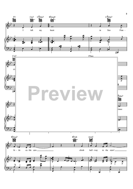 Digital Sheet Music for I Left My Heart In San Francisco by Tony Bennett, George Cory, Douglass Cross scored for Piano/Vocal/Chords; id:368067