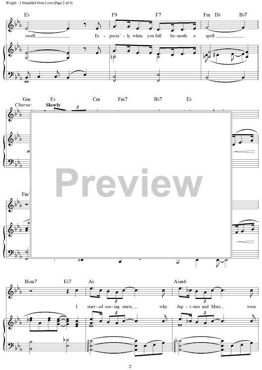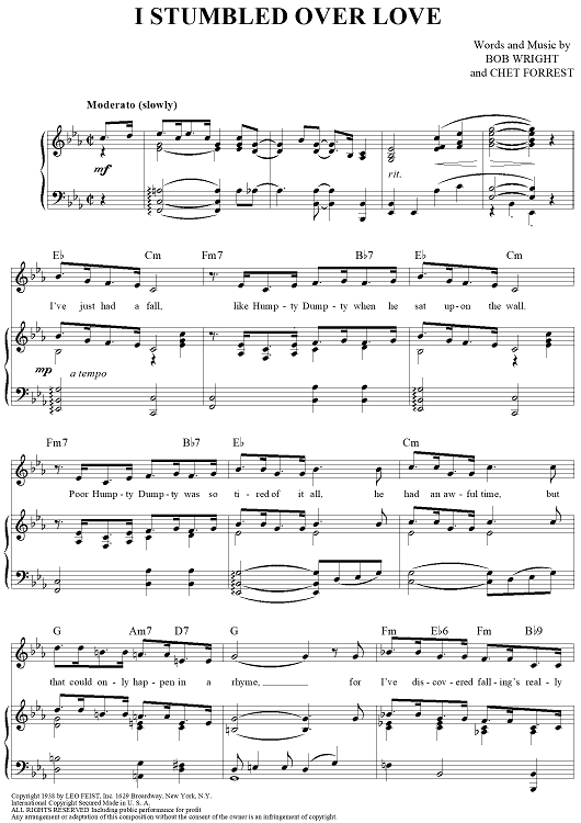Digital Sheet Music for I Stumbled Over Love by Bob Wright, Chet Forrest scored for Piano/Vocal/Chords; id:428427