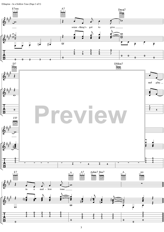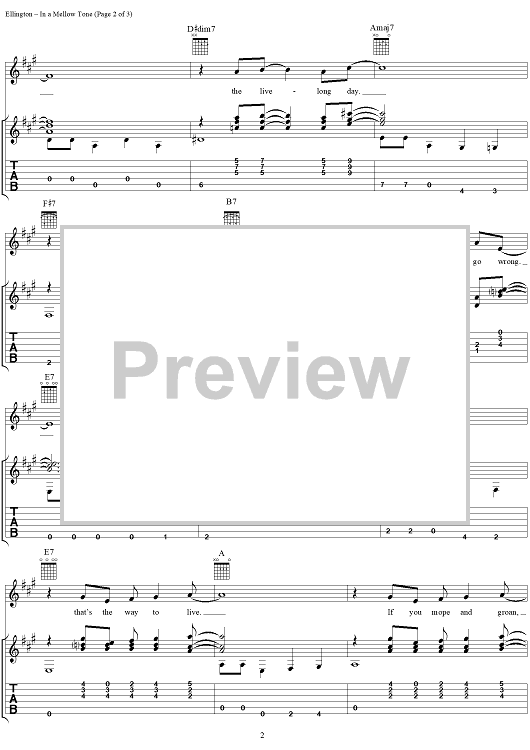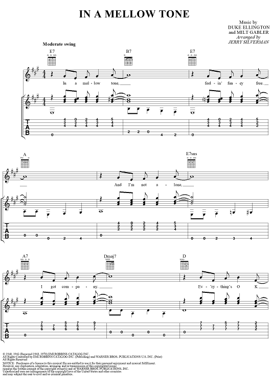 Digital Sheet Music for In A Mellow Tone by Duke Ellington, Jerry Silverman, Milt Gabler scored for Guitar Tab/Vocal; id:137812