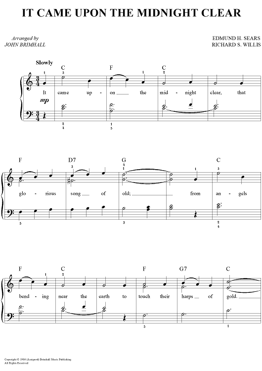Digital Sheet Music for It Came Upon the Midnight Clear by Edmund Sears, John Brimhall, Richard Storrs Willis scored for Easy Piano/Vocal/Chords; id:450548