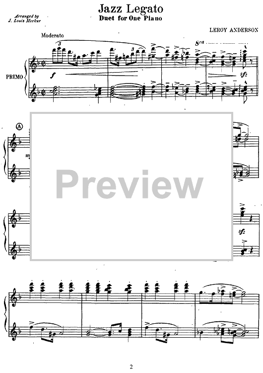 Digital Sheet Music for Jazz Legato by Leroy Anderson, J. Louis Merkur scored for 1 Piano, 4 Hands; id:424200