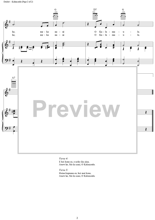 Digital Sheet Music for Kalamaula by Hannah Dudoit, Johnny Noble scored for Piano/Vocal/Chords; id:271720