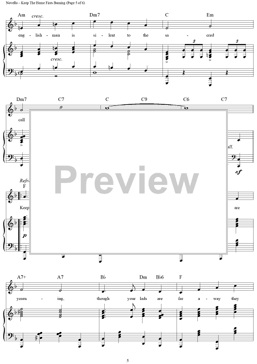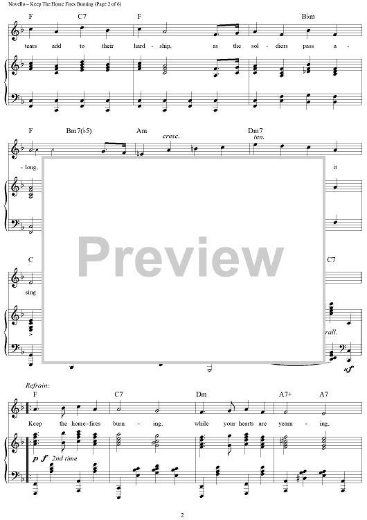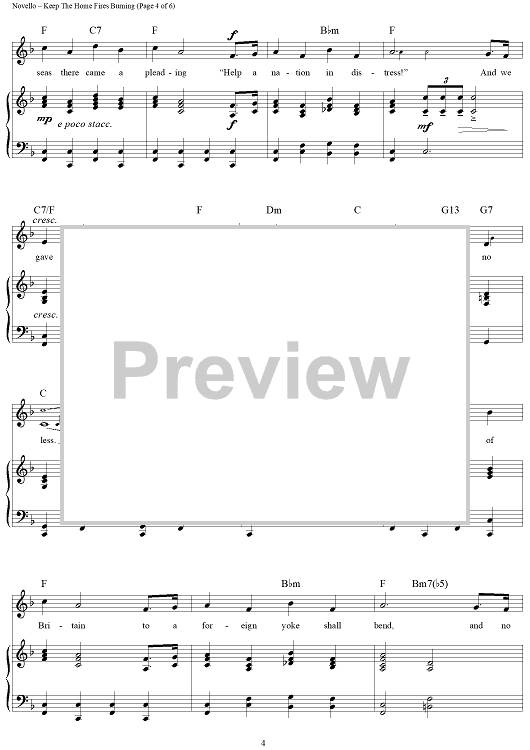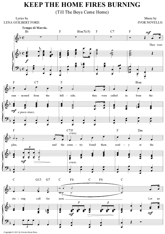 Digital Sheet Music for Keep The Home Fires Burning (Till the Boys Come Home) by Ivor Novello, Lena Guilbert Ford scored for Piano/Vocal/Chords; id:425802