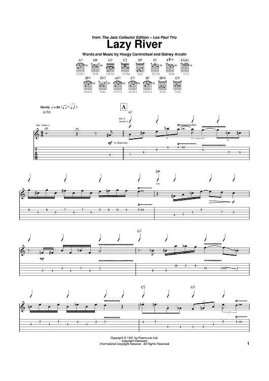 Digital Sheet Music for Lazy River by Chet Atkins, Hoagy Carmichael, Sidney Arodin, Les Paul, Merle Travis scored for Guitar Tab; id:373328