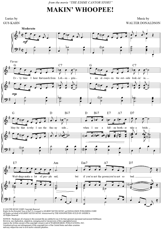 Digital Sheet Music for Makin' Whoopee! by Gus Kahn, Walter Donaldson scored for Piano/Vocal/Chords; id:271100