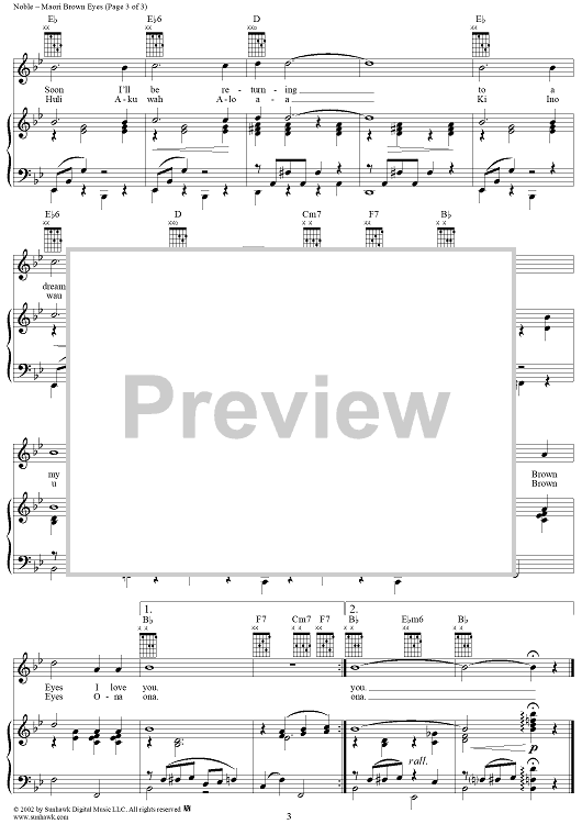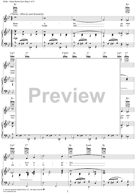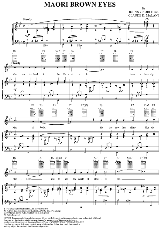 Digital Sheet Music for Maori Brown Eyes by Johnny Noble, Claude K. Malani scored for Piano/Vocal/Chords; id:253323