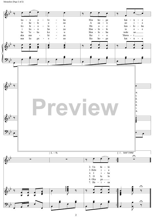 Digital Sheet Music for Maunaloa (Hula) by Jack Ailau scored for Piano/Vocal/Chords; id:277625
