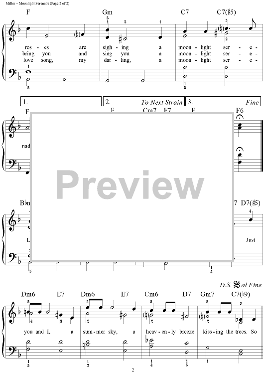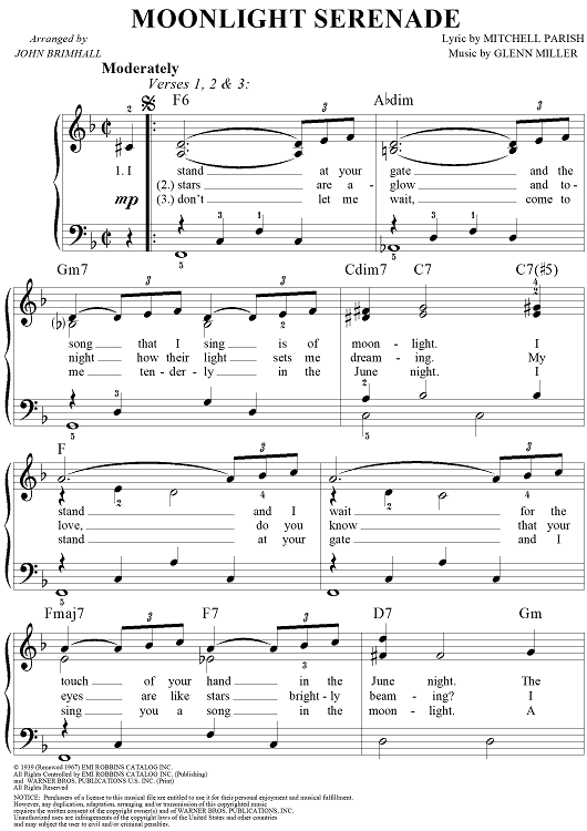 Digital Sheet Music for Moonlight Serenade by Mitchell Parish, Glenn Miller, John Brimhall scored for Easy Piano/Vocal; id:236595