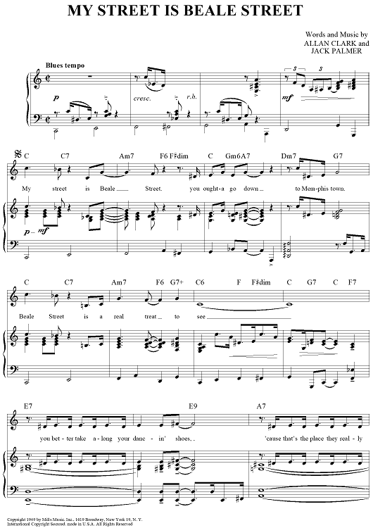 Digital Sheet Music for My Street is Beale Street by Jack Palmer, Allan Clark scored for Piano/Vocal/Chords; id:428168