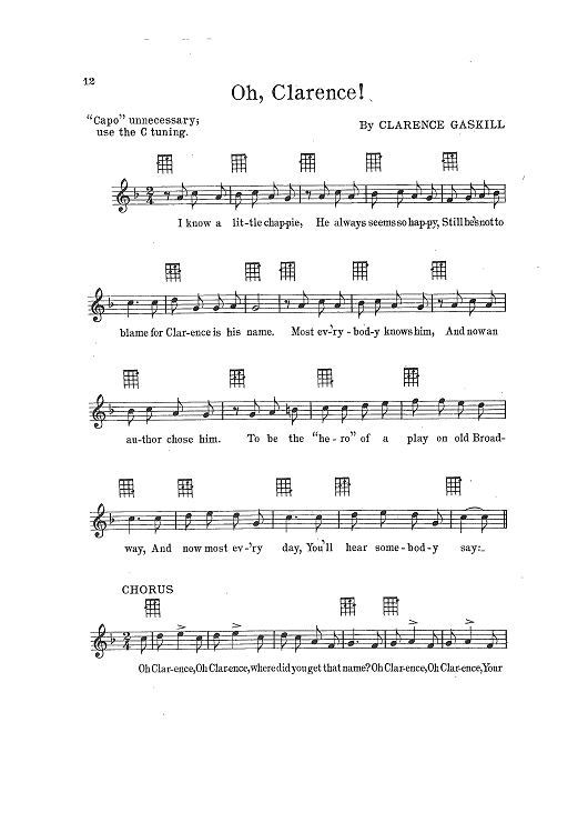 Digital Sheet Music for Oh, Clarence! by , Clarence Gaskill, C. E. Wheeler scored for Ukulele; id:418365