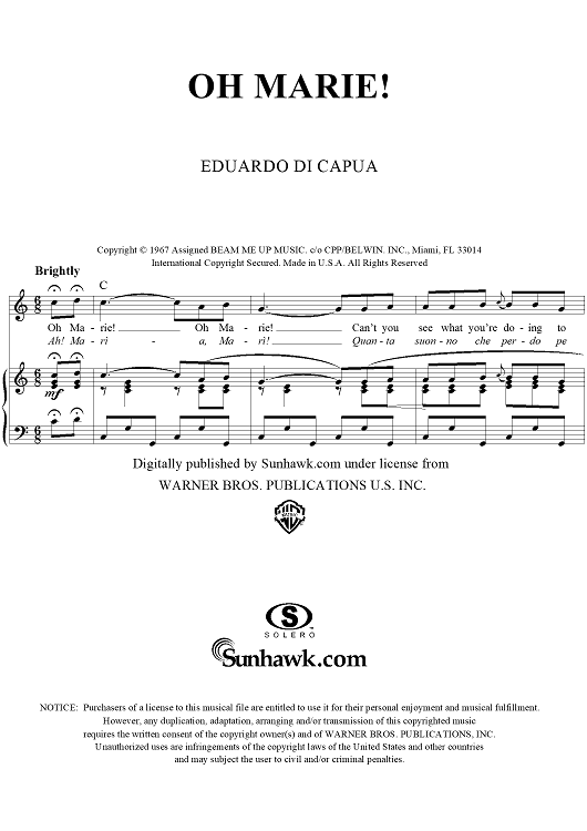 "Oh Marie!" Sheet Music by Eduardo Di Capua