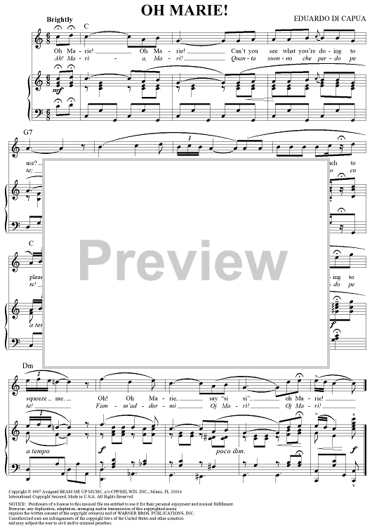 Digital Sheet Music for Oh Marie! by Eduardo di Capua scored for Piano/Vocal/Chords; id:271605