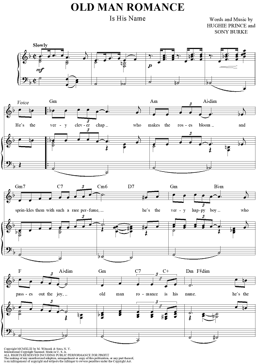 Digital Sheet Music for Old Man Romance Is His Name by Sonny Burke, Hughie Prince scored for Piano/Vocal/Chords; id:427392