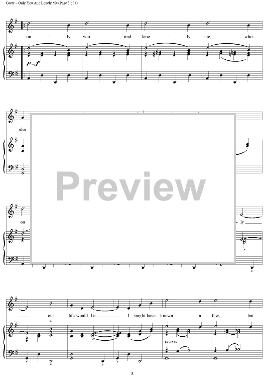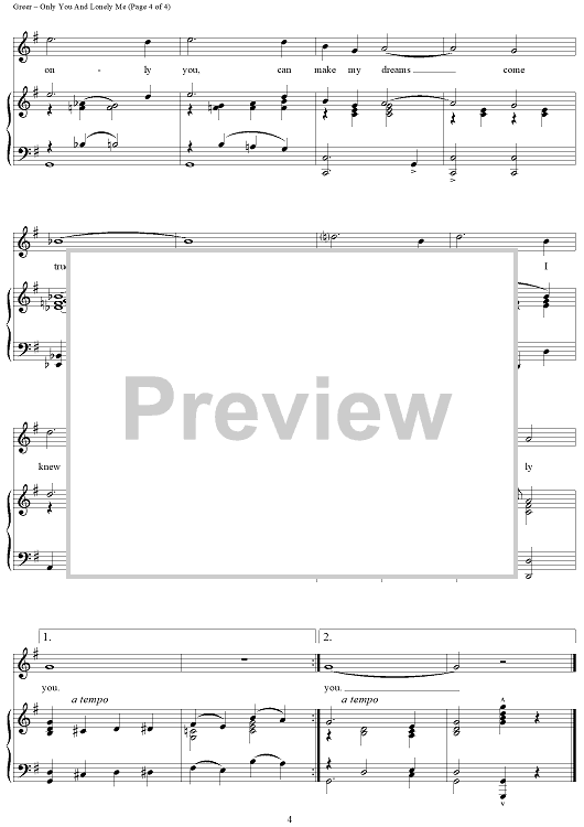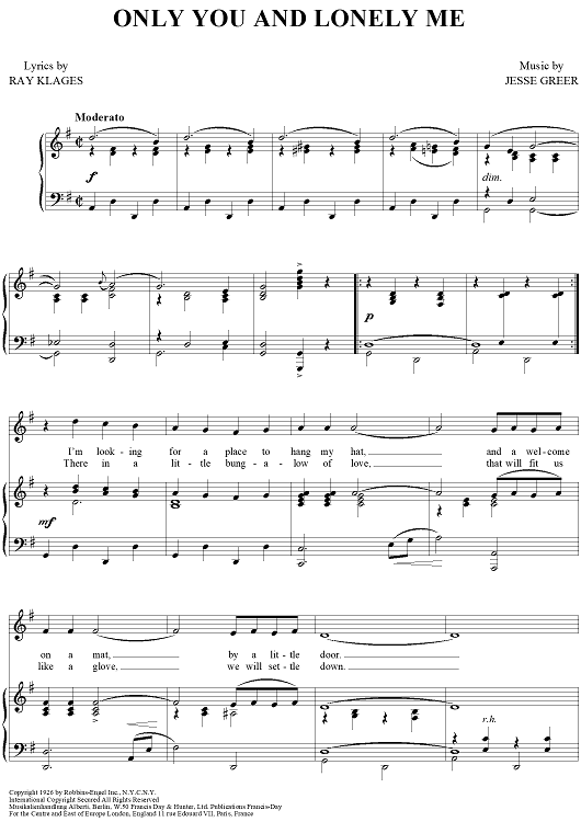 "Only You And Lonely Me" Sheet Music by Jesse Greer