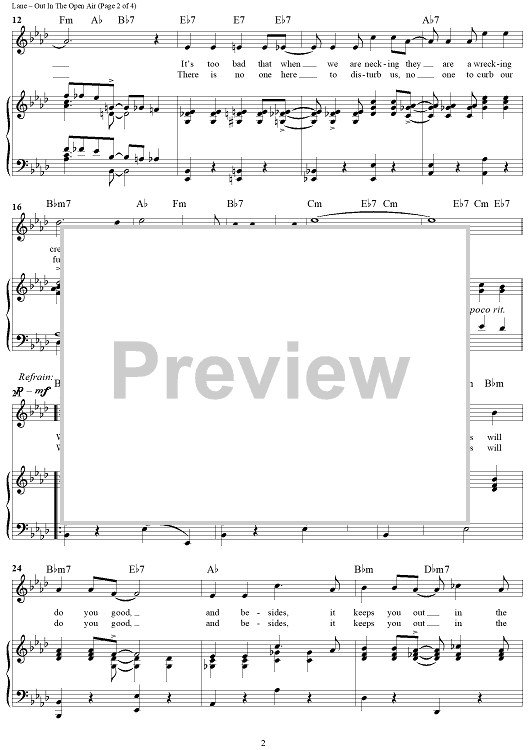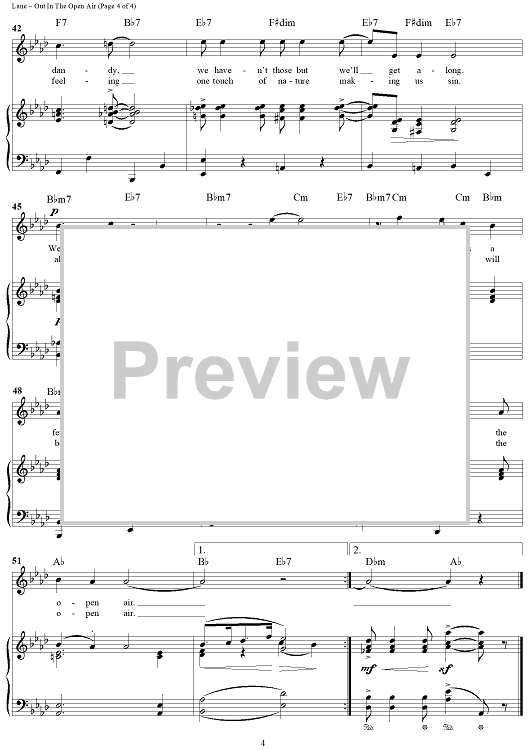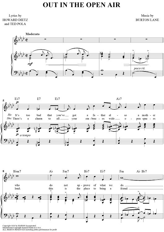 Digital Sheet Music for Out in the Open Air by Burton Lane, Howard Dietz, Ted Pola scored for Piano/Vocal/Chords; id:423148