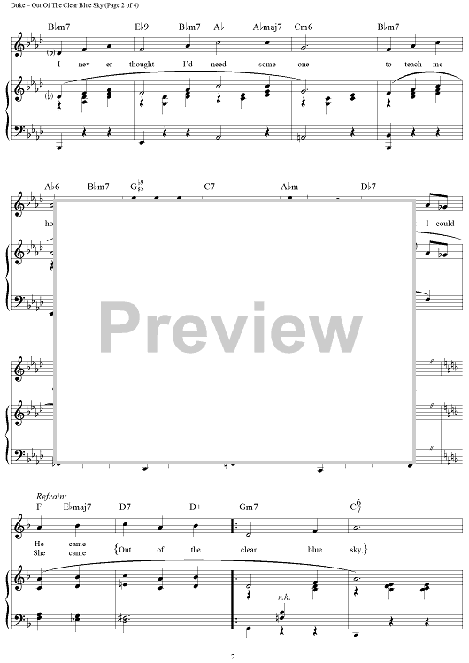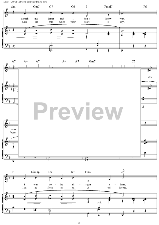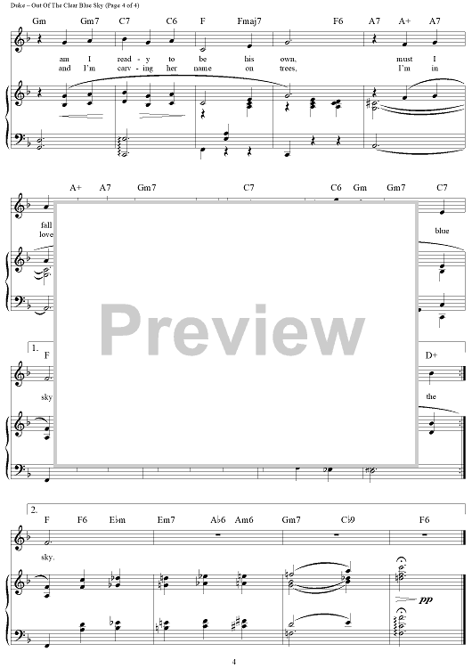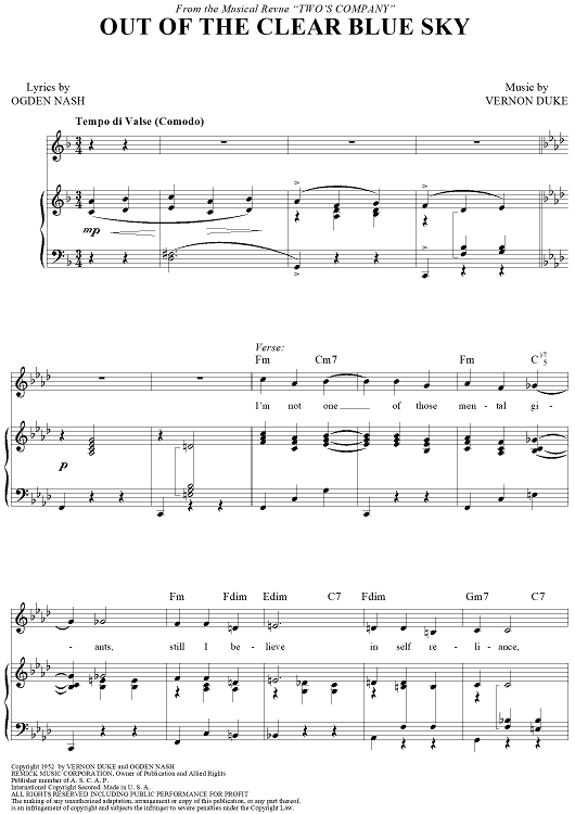 Digital Sheet Music for Out Of A Clear Blue Sky by Vernon Duke, Ogden Nash scored for Piano/Vocal/Chords; id:427670
