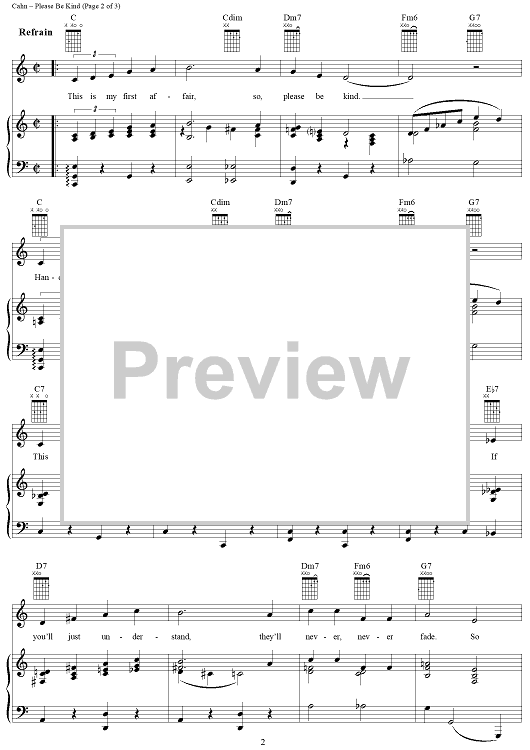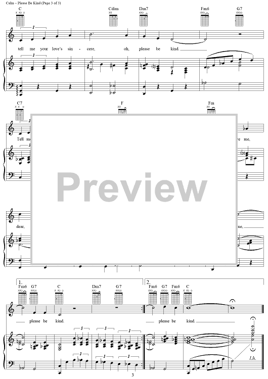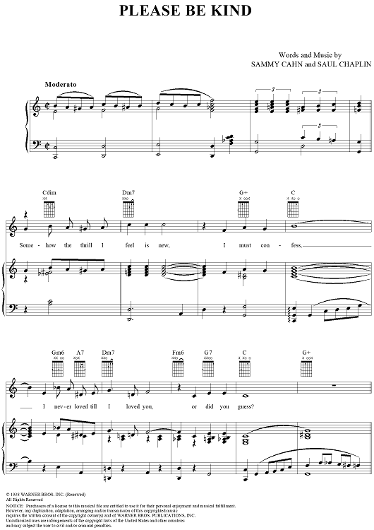 Digital Sheet Music for Please Be Kind by Sammy Cahn, Saul Chaplin scored for Piano/Vocal/Chords; id:273674