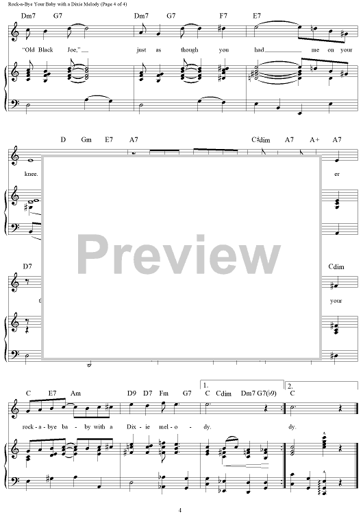 Digital Sheet Music for Rock-a-Bye Your Baby with a Dixie Melody by Al Jolson, Jean Schwartz, Samuel M. Lewis, Joseph Young scored for Piano/Vocal/Chords; id:257396