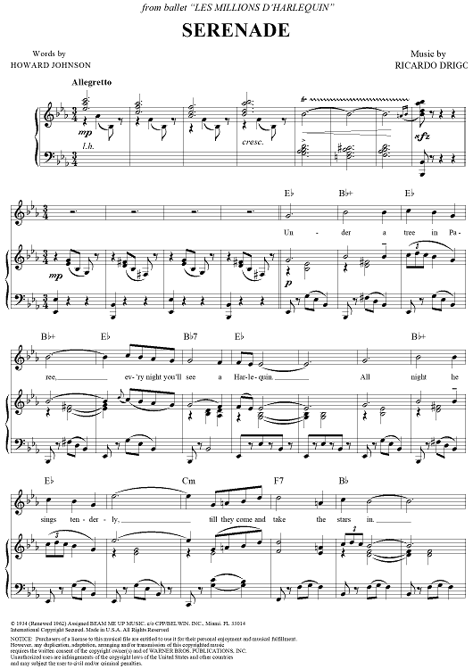 Digital Sheet Music for Serenade by Howard Johnson, Riccardo Drigo scored for Piano/Vocal/Chords; id:271166