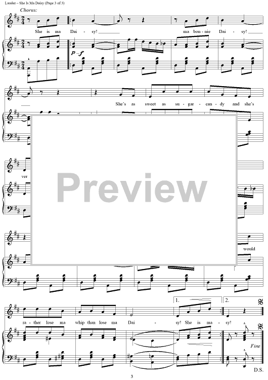 Digital Sheet Music for She Is Ma Daisy by Harry Lauder, J. D. Harper scored for Piano/Vocal/Chords; id:416418