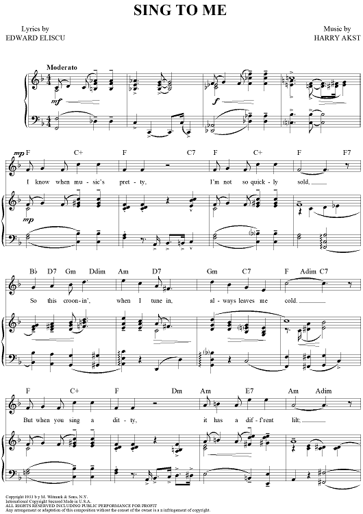 "Sing To Me" Sheet Music by Harry Akst