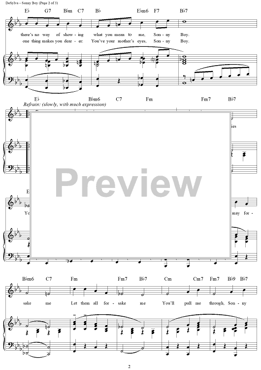 Digital Sheet Music for Sonny Boy by Al Jolson, Ray Henderson, Lew Brown, Buddy DeSylva scored for Piano/Vocal/Chords; id:271690