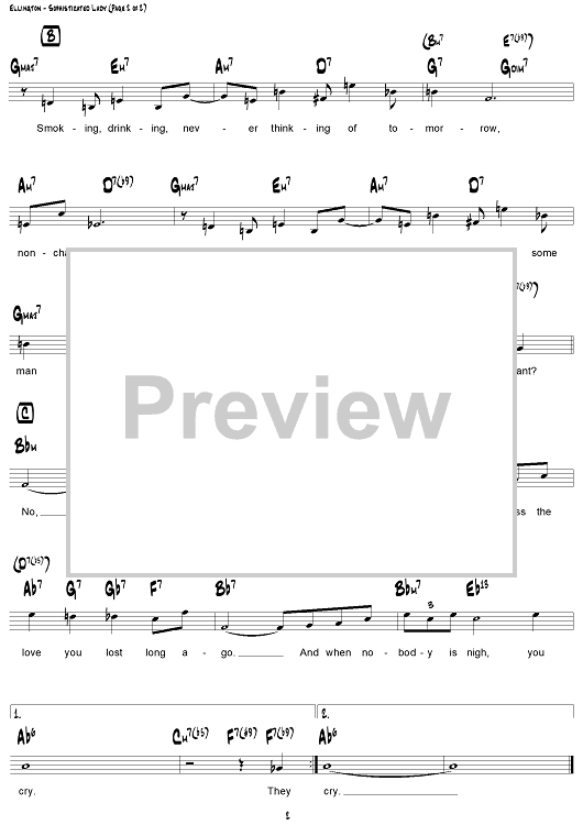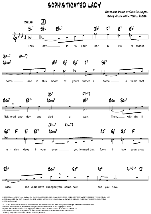 Digital Sheet Music for Sophisticated Lady by Mitchell Parish, Duke Ellington, Irving Mills scored for Lead Sheet; id:312249