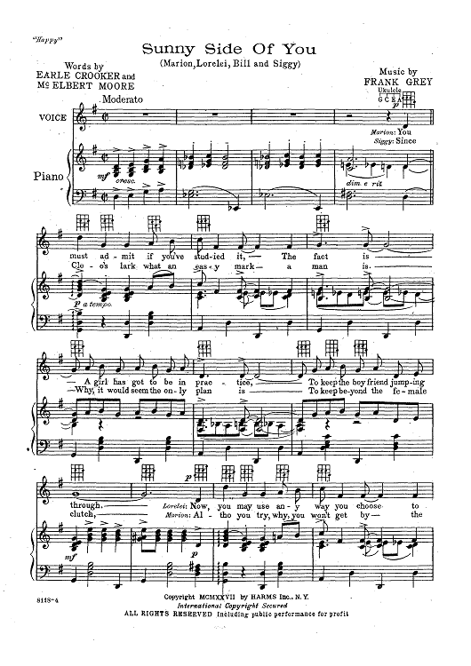 Digital Sheet Music for Sunny Side Of You by Frank Grey, McElbert Moore, Earl Crooker scored for Piano/Vocal; id:426511