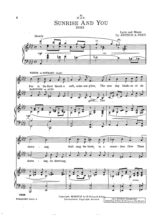 Digital Sheet Music for Sunrise And You by Arthur A. Penn scored for Piano/Vocal; id:426500