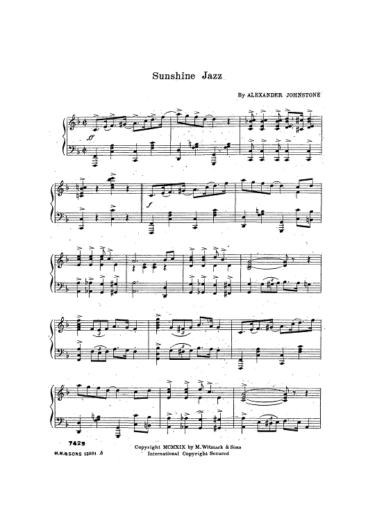 "Sunshine Jazz" Sheet Music by Alexander Johnstone