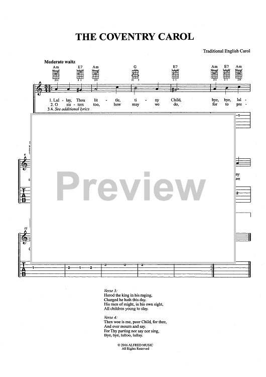 Digital Sheet Music for The Coventry Carol by Traditional English Carol scored for Easy Guitar Tab/Vocal/Chords; id:463636