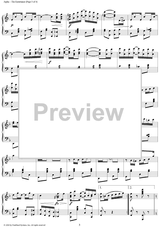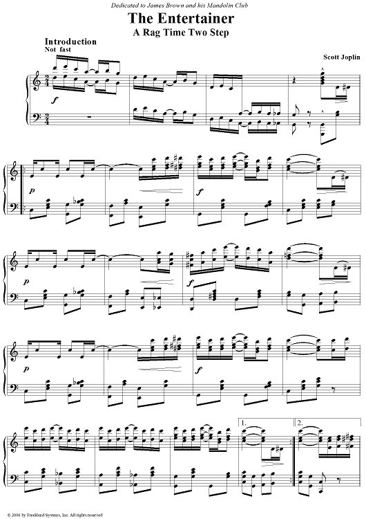 Digital Sheet Music for The Entertainer by Scott Joplin scored for Piano Solo; id:249669