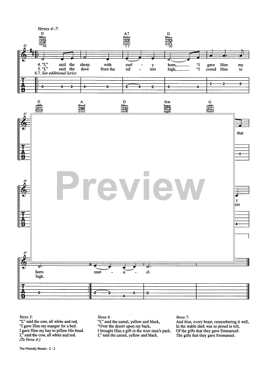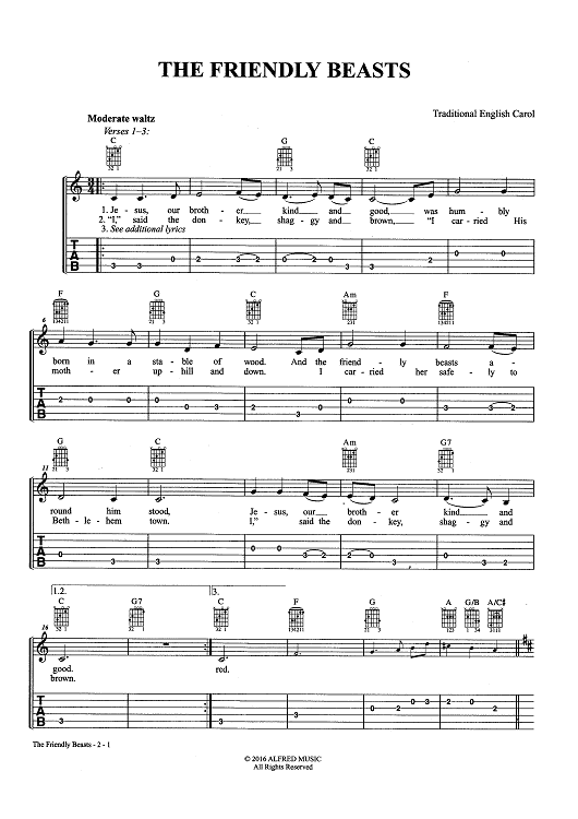 Digital Sheet Music for The Friendly Beasts by Traditional English Carol scored for Easy Guitar Tab/Vocal/Chords; id:463638