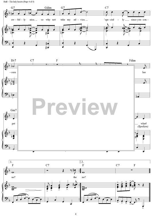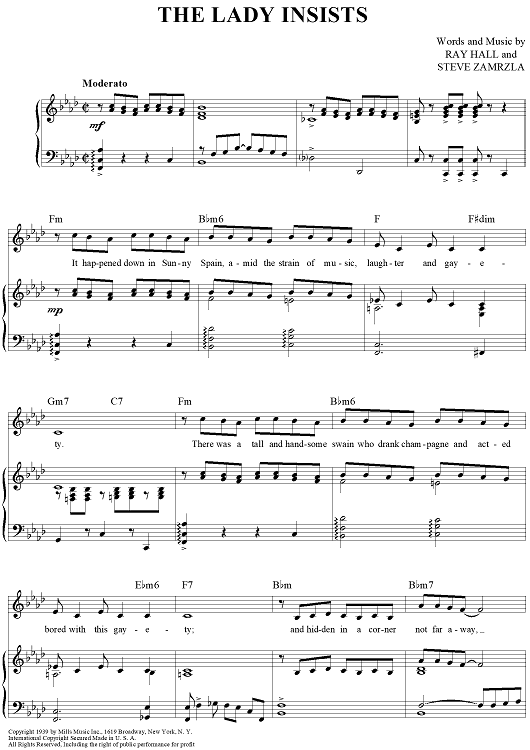 Digital Sheet Music for The Lady Insists by Ray Hall, Steve Zamrzla scored for Piano/Vocal/Chords; id:428174