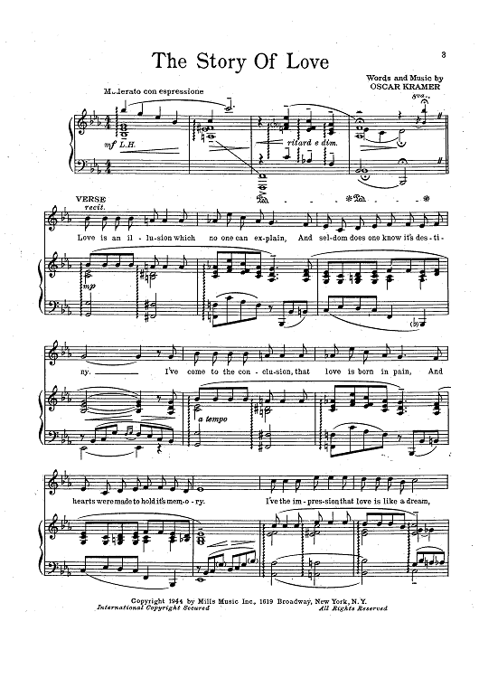 Digital Sheet Music for The Story Of Love by Oscar Kramer scored for Piano/Vocal; id:427333