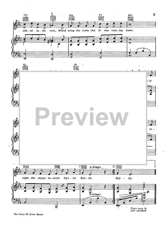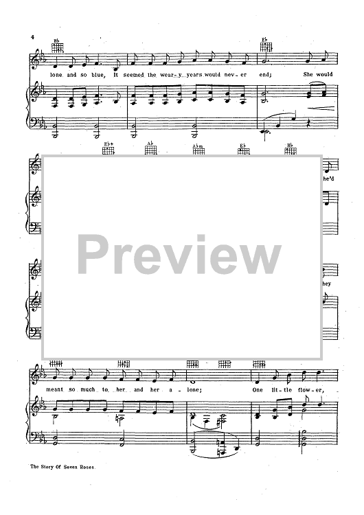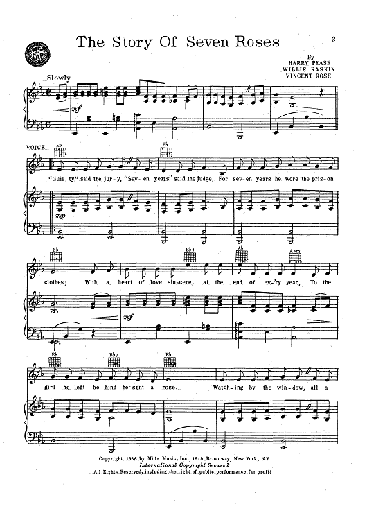 Digital Sheet Music for The Story Of Seven Roses by Harry Pease, Vincent Rose, Willie Raskin scored for Piano/Vocal; id:427337