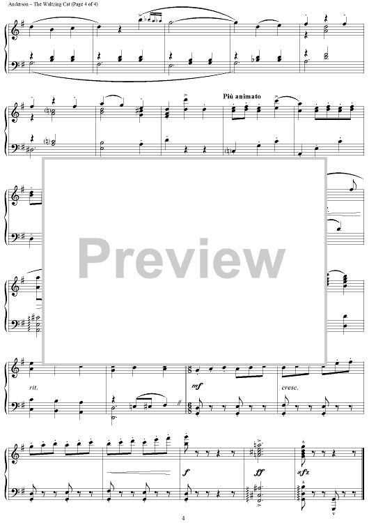 Digital Sheet Music for The Waltzing Cat by Leroy Anderson scored for Piano Solo; id:321696