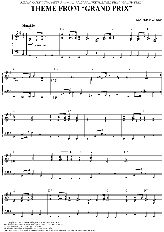 "Theme From "Grand Prix"" Sheet Music by Maurice Jarre
