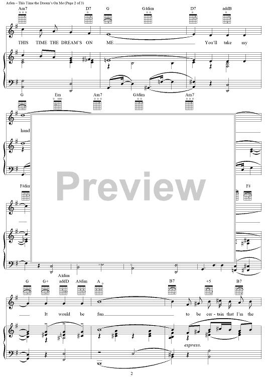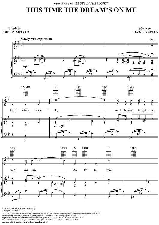 Digital Sheet Music for This Time the Dream's On Me by Harold Arlen, Johnny Mercer scored for Piano/Vocal/Chords; id:276843