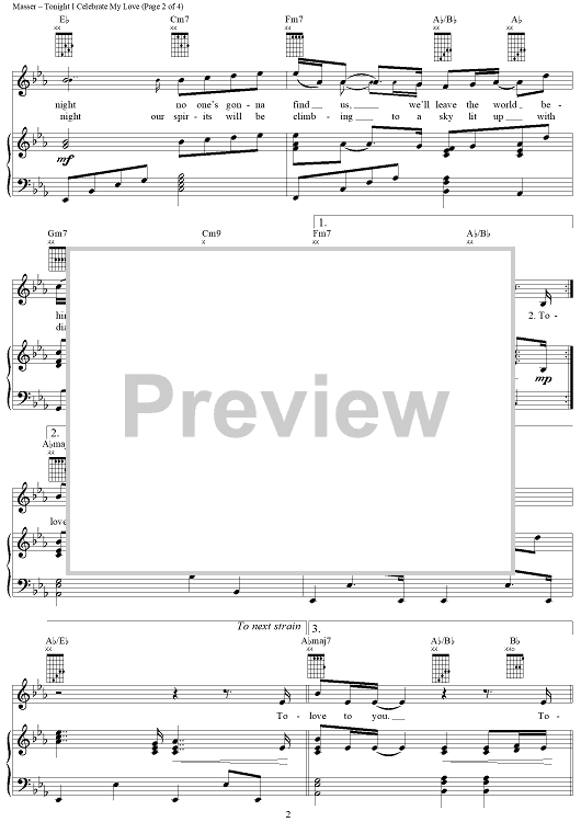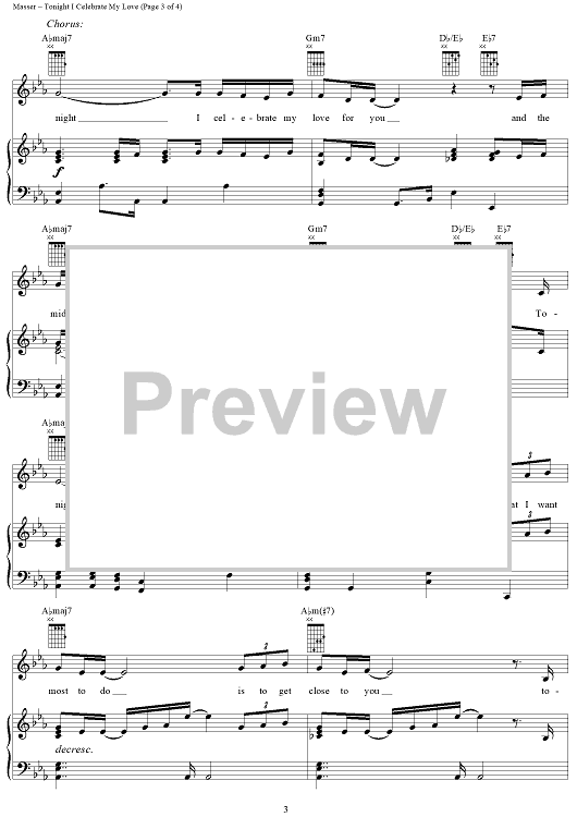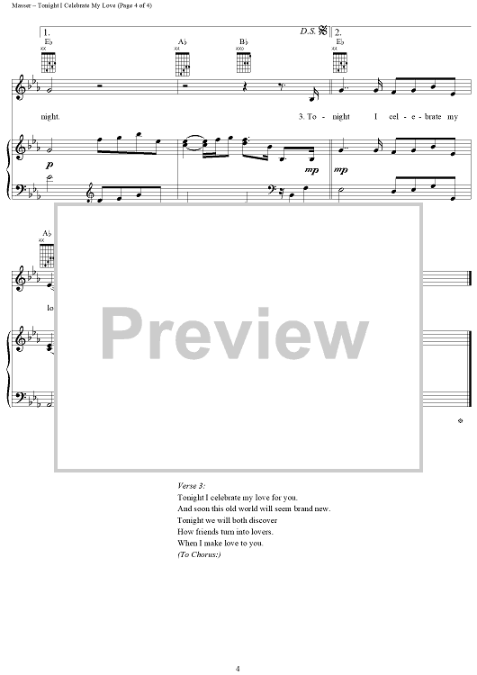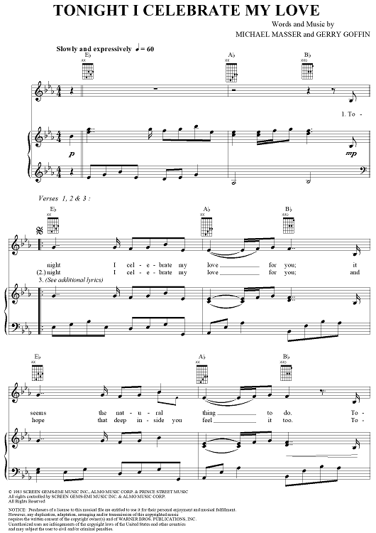 Digital Sheet Music for Tonight I Celebrate My Love by Michael Masser, Peabo Bryson, Roberta Flack, Gerry Goffin scored for Piano/Vocal/Chords; id:251490