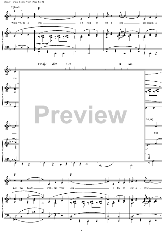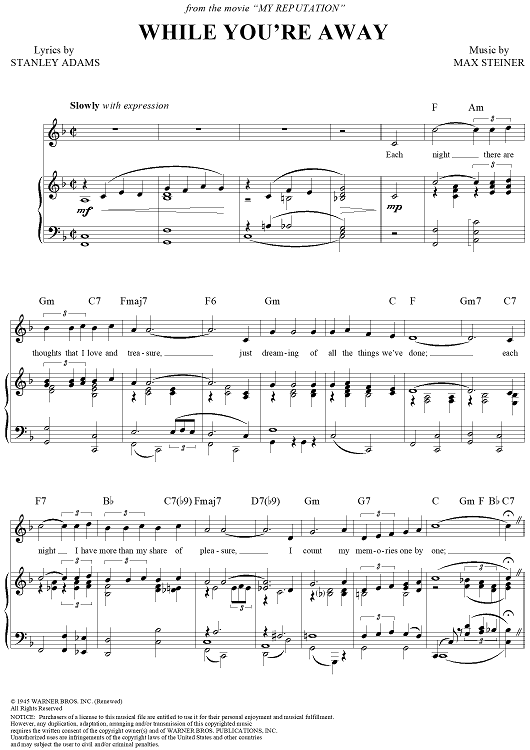 Digital Sheet Music for While You're Away by Max Steiner, Stanley Adams scored for Piano/Vocal/Chords; id:259300